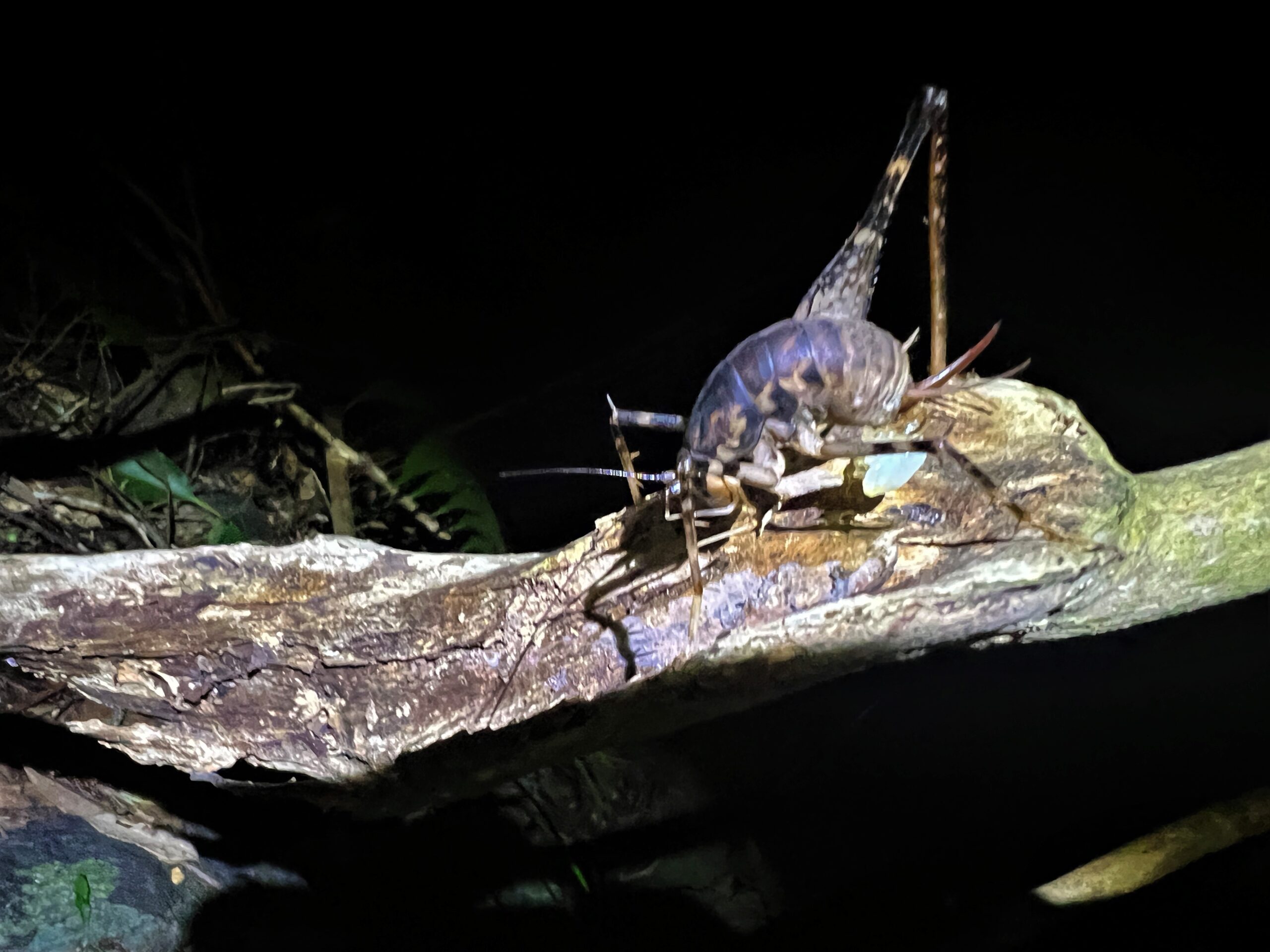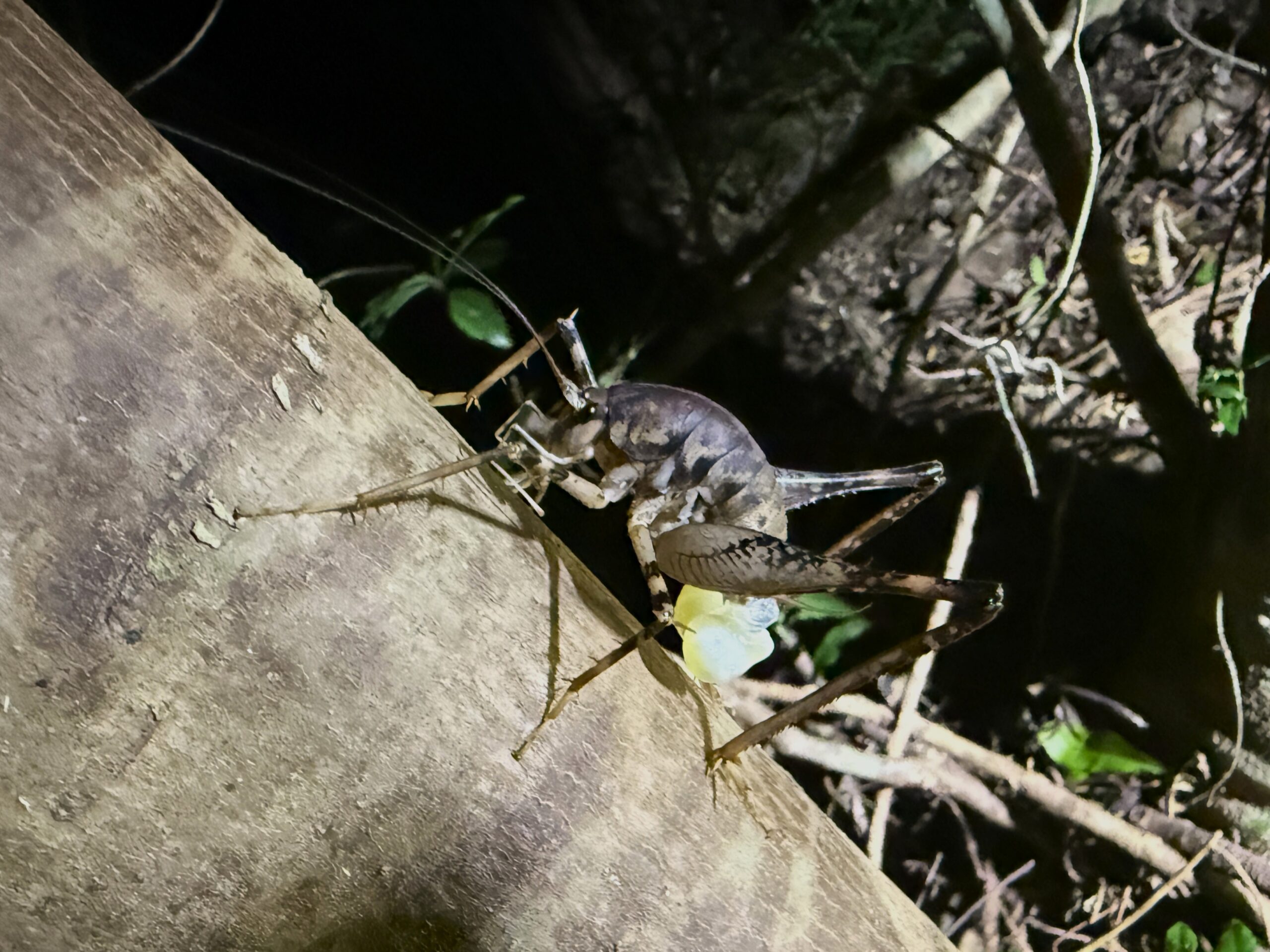 2021年 奄美大島にてガイドの西さんと昆虫観察中、西さんのズボンに留まったので、撮影、その大きさや、力強さ、に驚きました。 2022年 奄美大島で何かを出している用だったので、一応動画も取りました。2024年 奄美大島請島にて、環境省さん瀬戸内町さん、池地みのり会さんに許可を頂き、みのり会三ノ京会長に案内頂き撮影、とりあえずその大きさにはいつも驚きます。この時はカニの餌になっているのを確認しました。2025年 同様の手続きで三ノ京さんにガイド頂き、産卵中?のカマドウマを撮影しました。