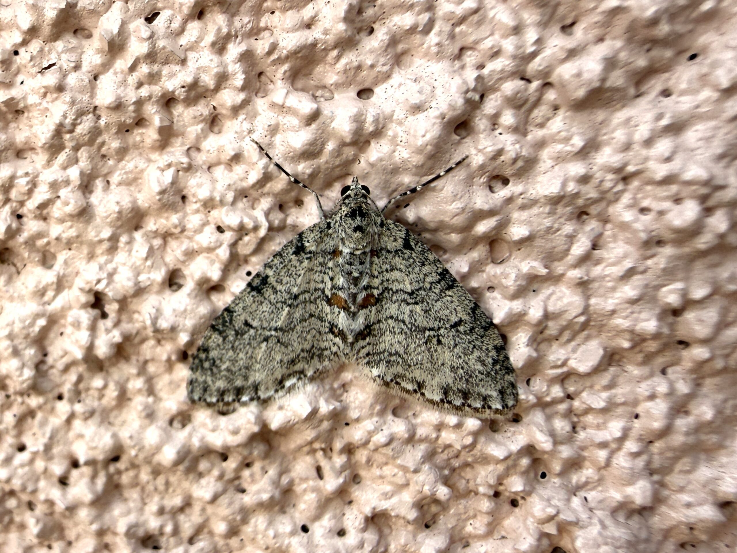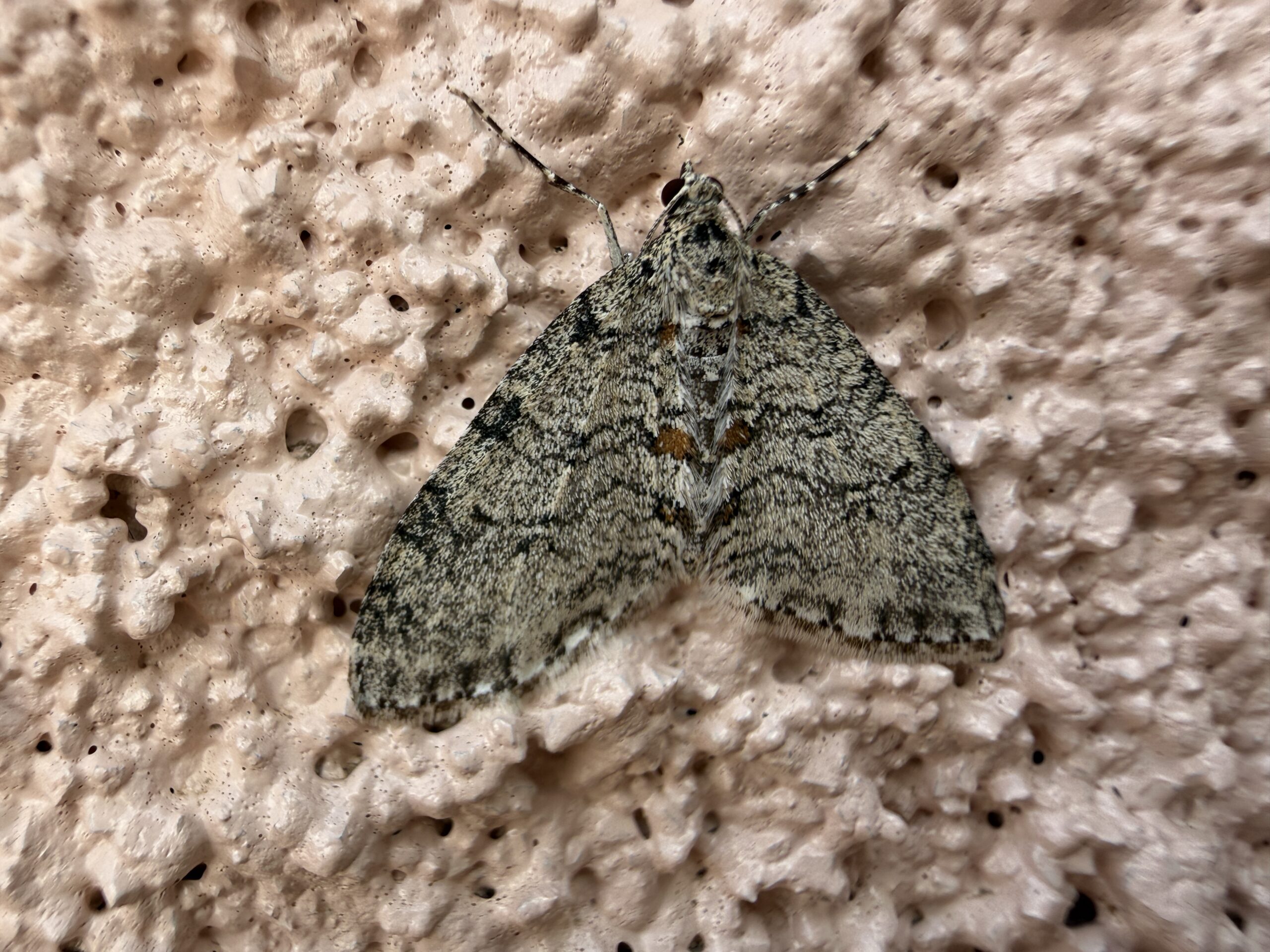 2026年 三重県津市の自宅玄関の壁に張り付いているのを発見、中心付近の濃いオレンジの模様が気になり撮影