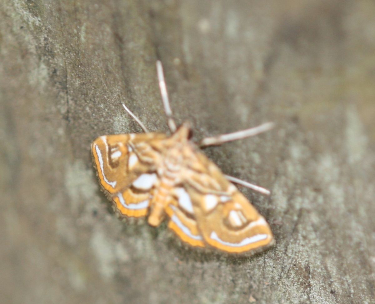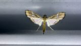 アカマダラメイガ メイガ 2025.08.192025.10.06 2025年 三重県津市白山町の家の明かりに集まってきた蛾です。わりと小さい蛾ですが、ピンクと黄色カラーリングと細い体形が印象的な蛾でした。必ず数匹来ます。 分布:北海道~奄美大島 体長:25mm程度