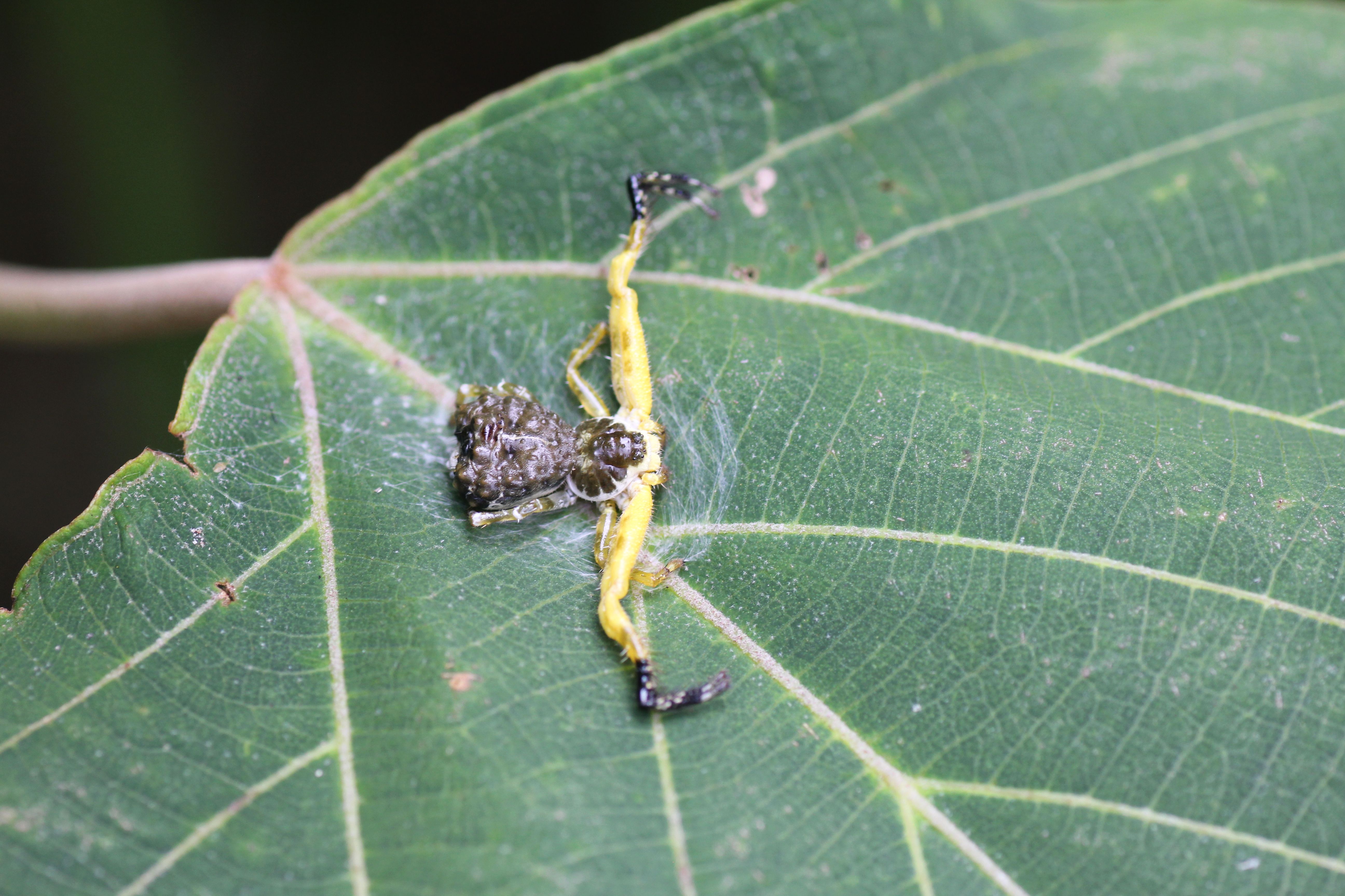 ハナグモ クモ 2014.12.132025.10.06 2007年 兵庫県西宮市甲山付近にて撮影 このクモは緑色の綺麗なクモだったので撮影した。2024年 奄美大島の請島でも撮影 分布:日本全土 体長:3mm~8mm程度 西宮 請島
