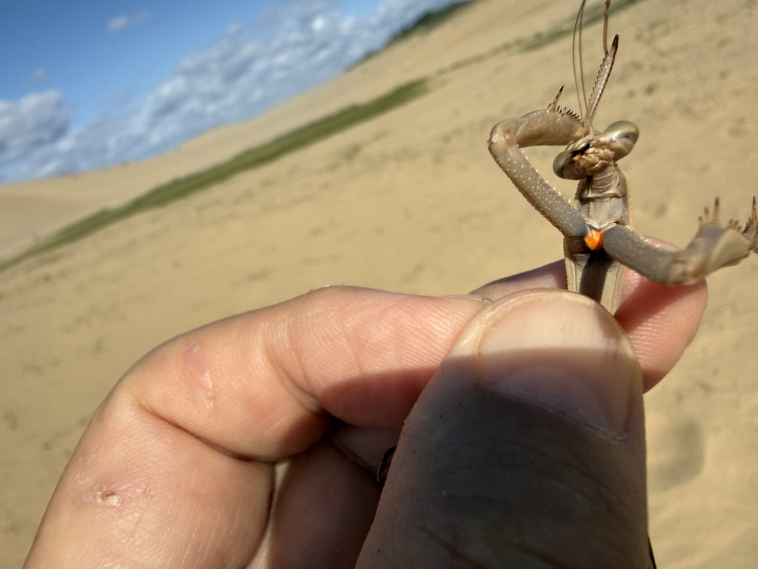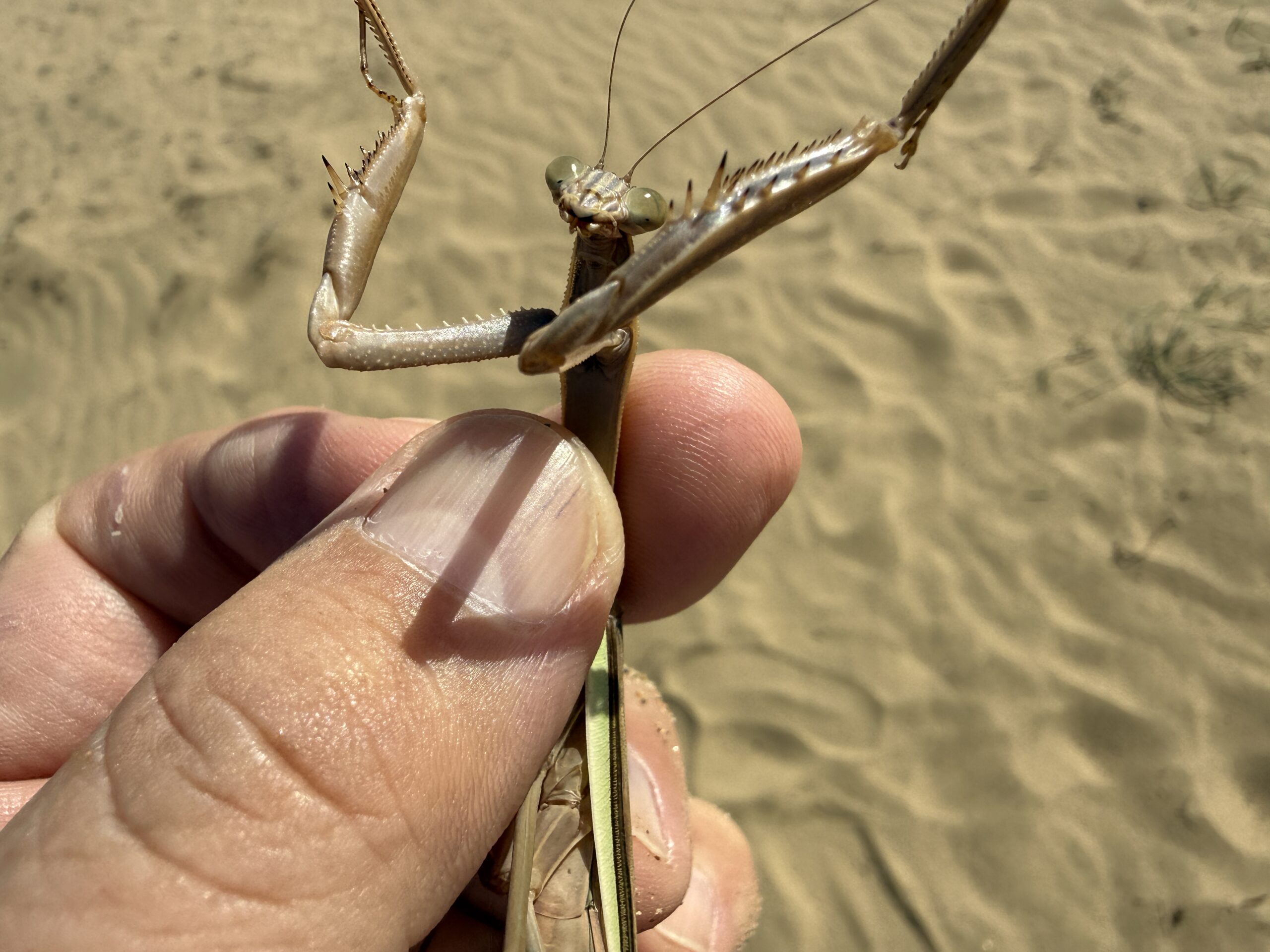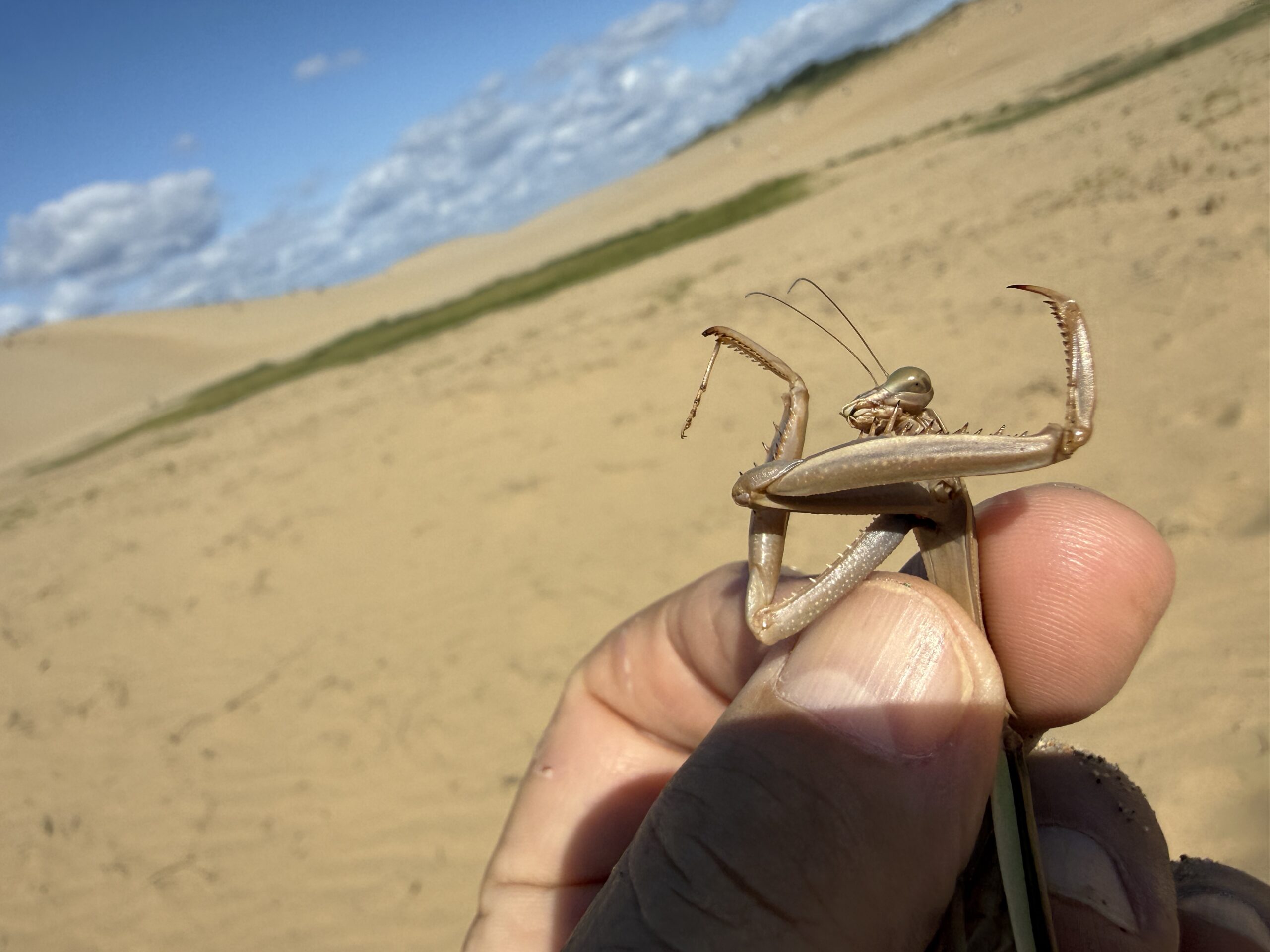 チョウセンカマキリ カマキリ 2014.11.122025.10.25 2014年 西宮市甲山付近にて撮影 オオカマキリと同じ生息地でよく見かける、オオカマキリに比べやや小さくスリムである。カマの付け根が朱色である事が特徴的である。2019年 茨城県竜ケ崎空港で撮影。 2025年 鳥取砂丘でオオカマキリ?と思い確認するとチョウセンカマキリでした。砂漠のど真ん中で驚きました。 分布:本州以南 体長:60~85mm程度 鳥取砂丘 鳥取砂丘 鳥取砂丘 鳥取砂丘