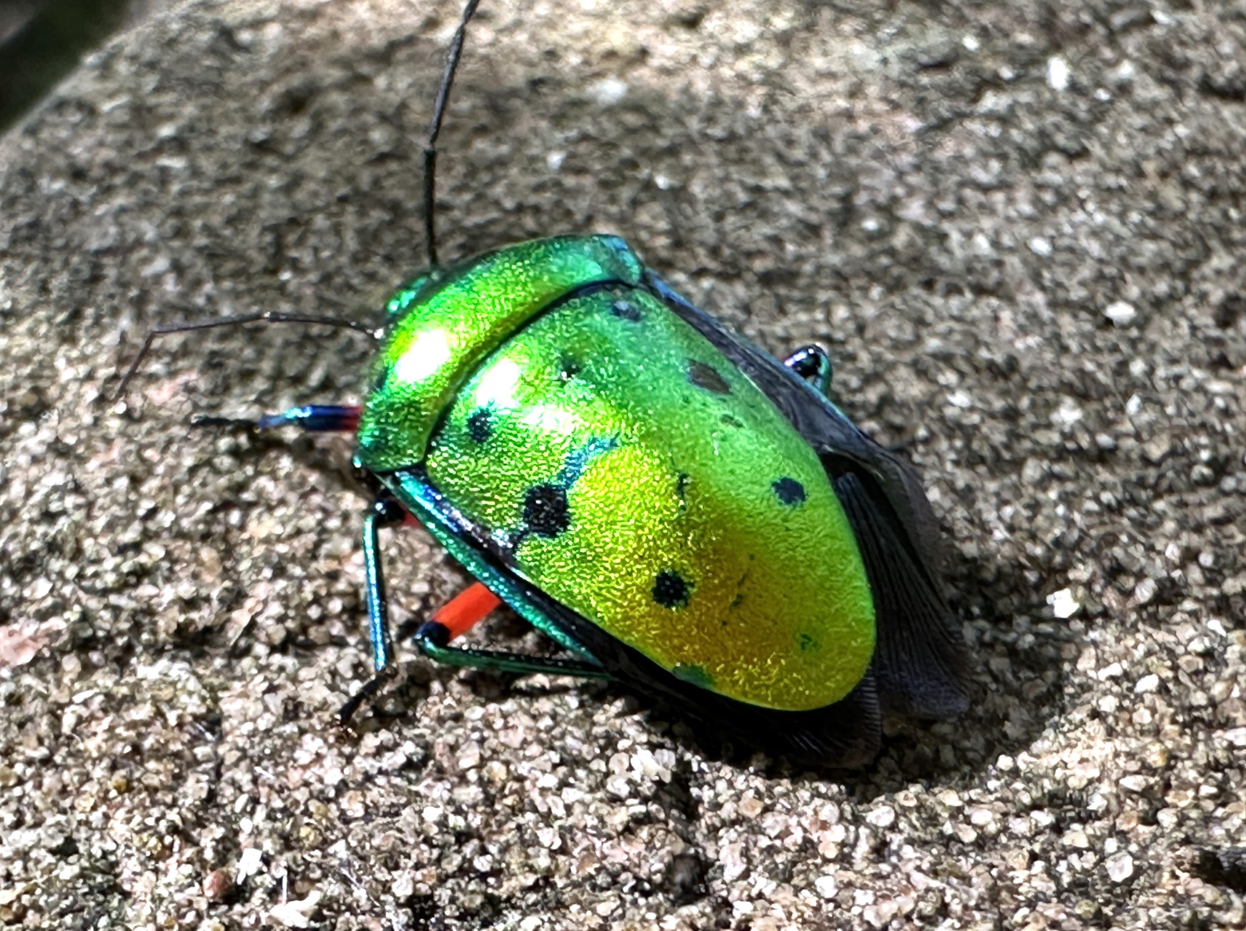 アカスジキンカメムシ キンカメムシ 2019.08.252025.10.06 2019年 西宮市甲山付近で撮影 しかし8月末の5齢幼虫であり越冬する個体と想像します。まん丸なのが驚きました。成虫は発見できてません。2021年5月末 成虫撮影場所は同様です。2024年 西宮市仁川上流で撮影 分布:本州~九州 体長:15mm~20mm