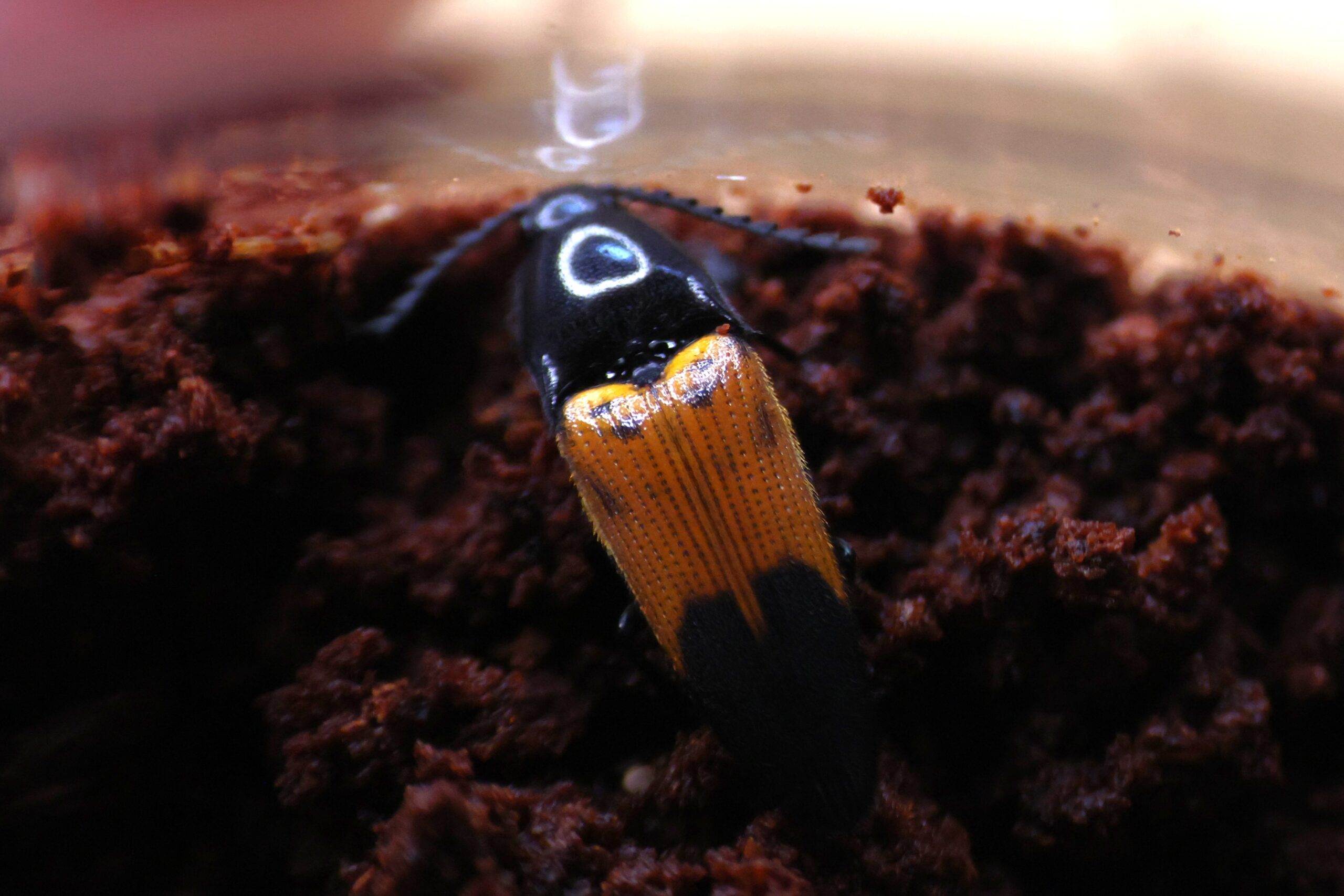 2025年 徳島県三好市東曽谷さんの標高1000m付近の赤枯れ木で採集した、別の昆虫をブリードされていた、丹波の藤井さんの飼育部屋で羽化したと言う情報をもらい、撮影に駆け付けました。実は頂いた後、撮影中に京丹後市の山中で飛来してしまいました。飛来距離はすさまじく、あっという間に5m程度の大木の向こうへ飛来してしまい、なすすべがない状況でした。