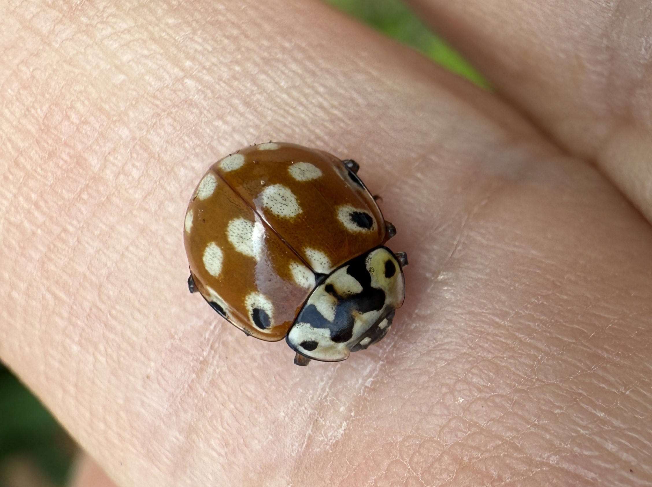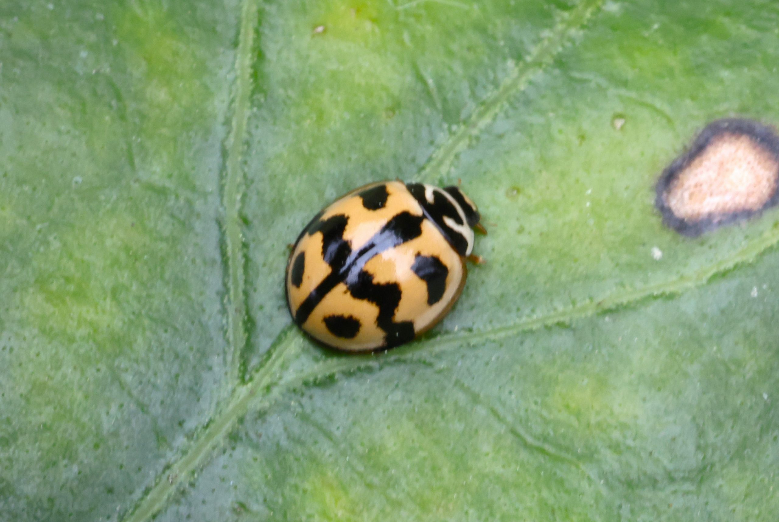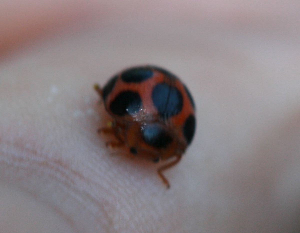 オオジュウゴホシテントウ テントウムシ 2021.04.162025.10.06 2021年 沖縄県ヤンバルの森で撮影 カメノコテントウ以来の大型テントウでした。 分布:沖縄諸島、先島諸島、九州の一部 体長:10mm程度